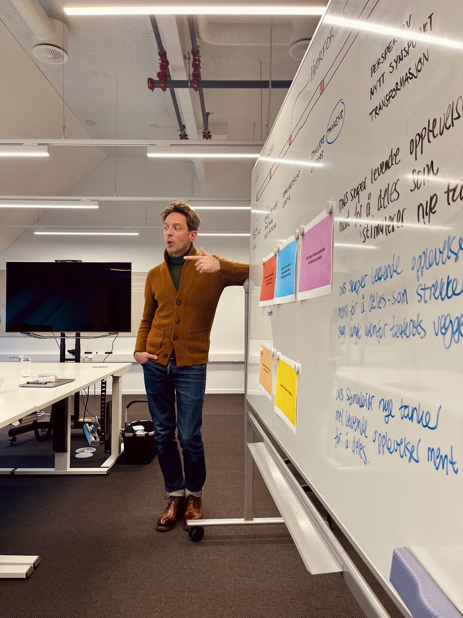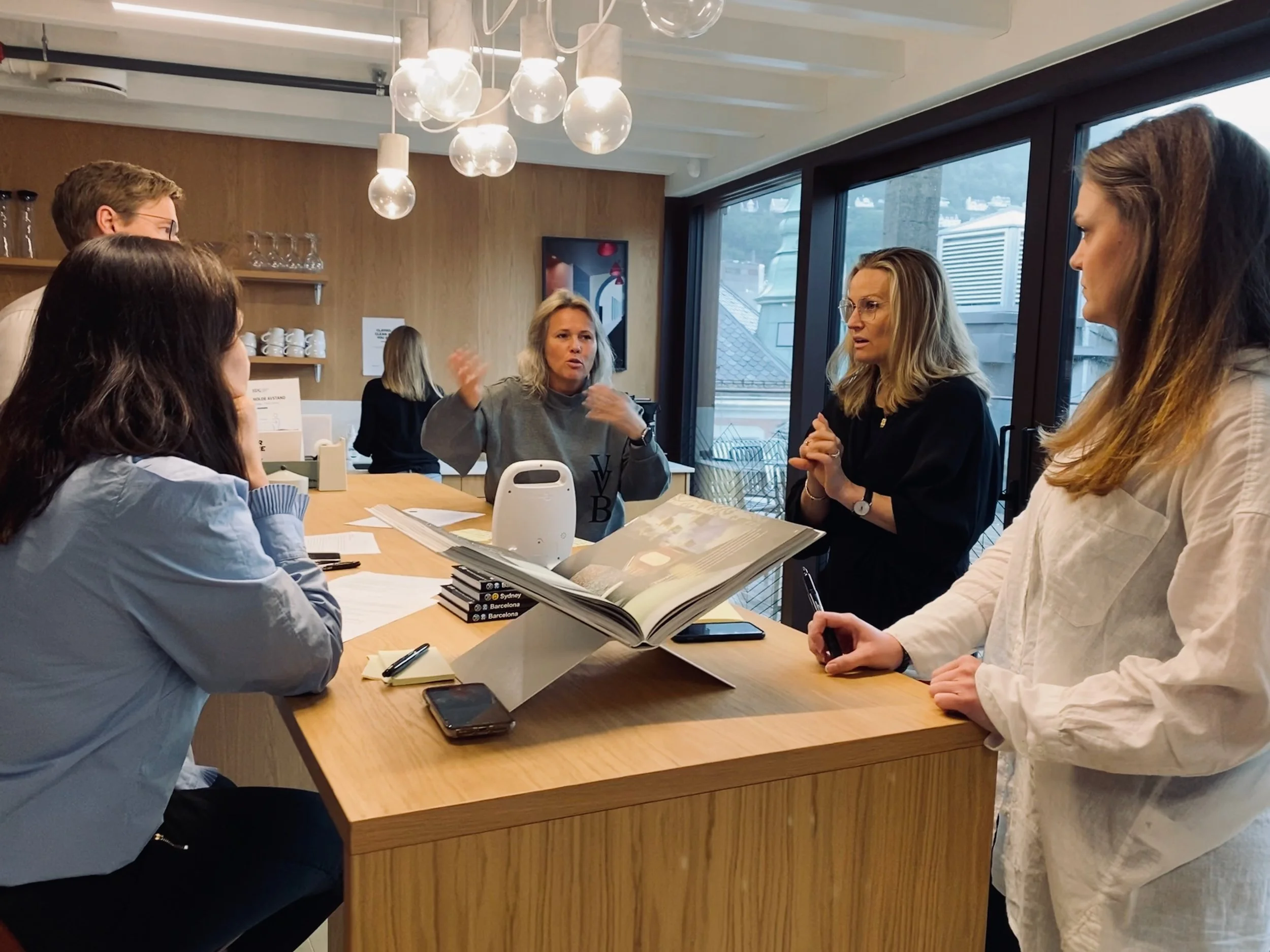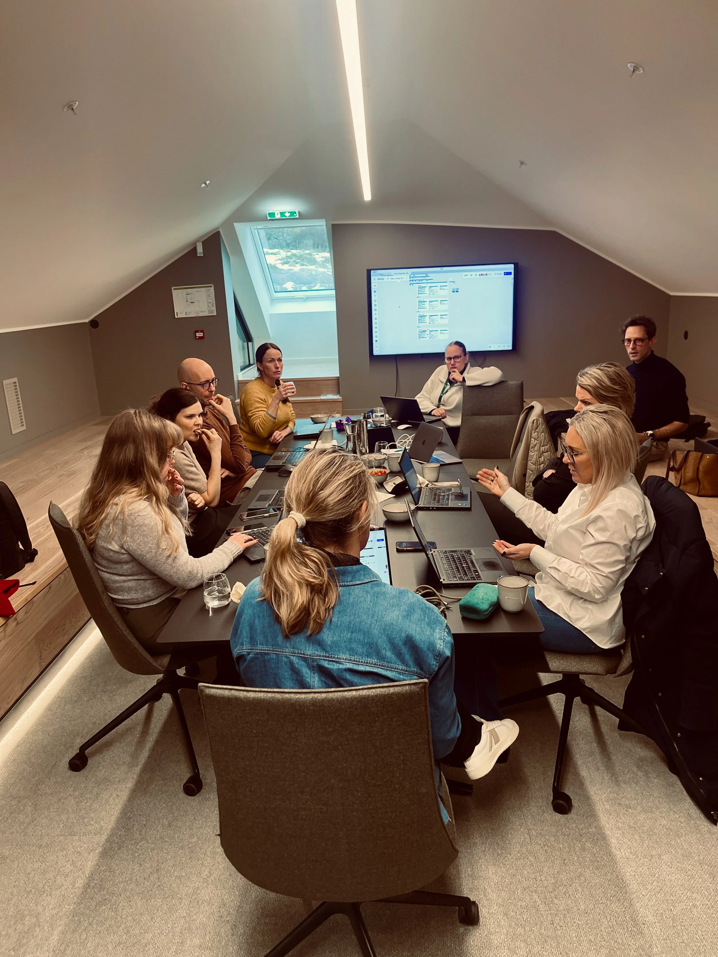 Fire måter å jobbe med oss på. Innsiktsarbeid hvor vi undersøker markedet for dere. Workshops der teamet tar beslutninger sammen. Kreative leveranser som gjør store idéer håndgripelige. Og sparring én-til-én når det trengs.